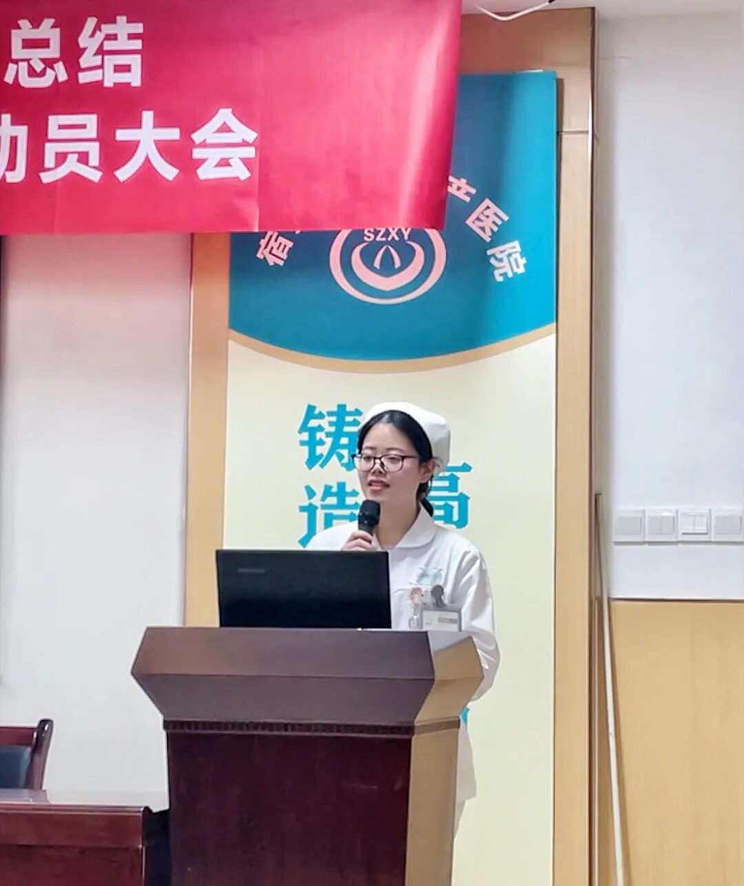 紧接着,吴国华院长宣读了关于表彰第一个“百日安全日无差错活动”优秀科室决定,对在活动中表现突出的集体进行了表彰奖励。其中产房代表进行了获奖宣言。